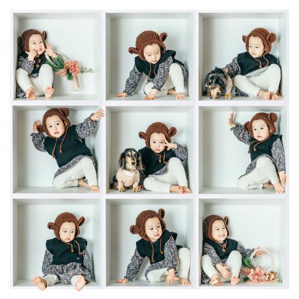 フォトパネル、3面台紙、プレミアムフォトアルバムの取り扱いがあります。同じ笑顔を飾ってほしいという思いから「ご祖父母様向けセット」もご用意しております。
